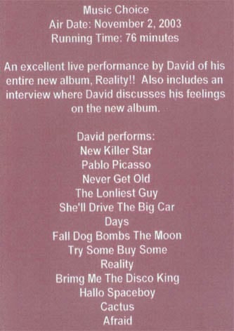 DAVID BOWIE Music Choice November 2.2003 DVD