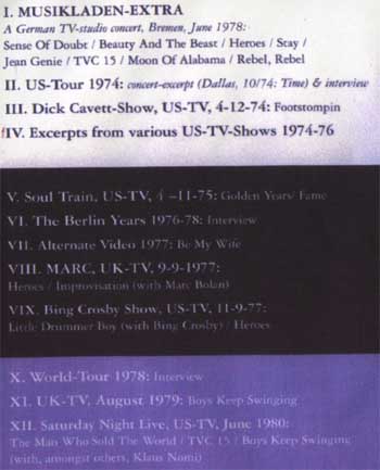 | ◁Eb>啁E??説昁E/b>◁E/td> | DAVID BOWIE Golden Years 1974-1980 TIME 98min RANK A PRO SHOT |