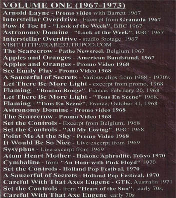 PINK FLOYD A VIDEO ANTHOLOGY VOL.1 THE EARLY YEARS 1967-1973 TIME 115min RANK A PRO SHOT