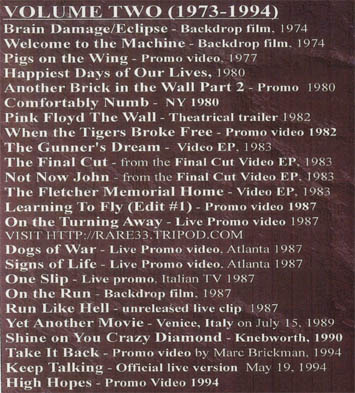 PINK FLOYD A VIDEO ANTHOLOGY VOL.2 THE EARLY YEARS 1973-1994 TIME 119min RANK A PRO SHOT