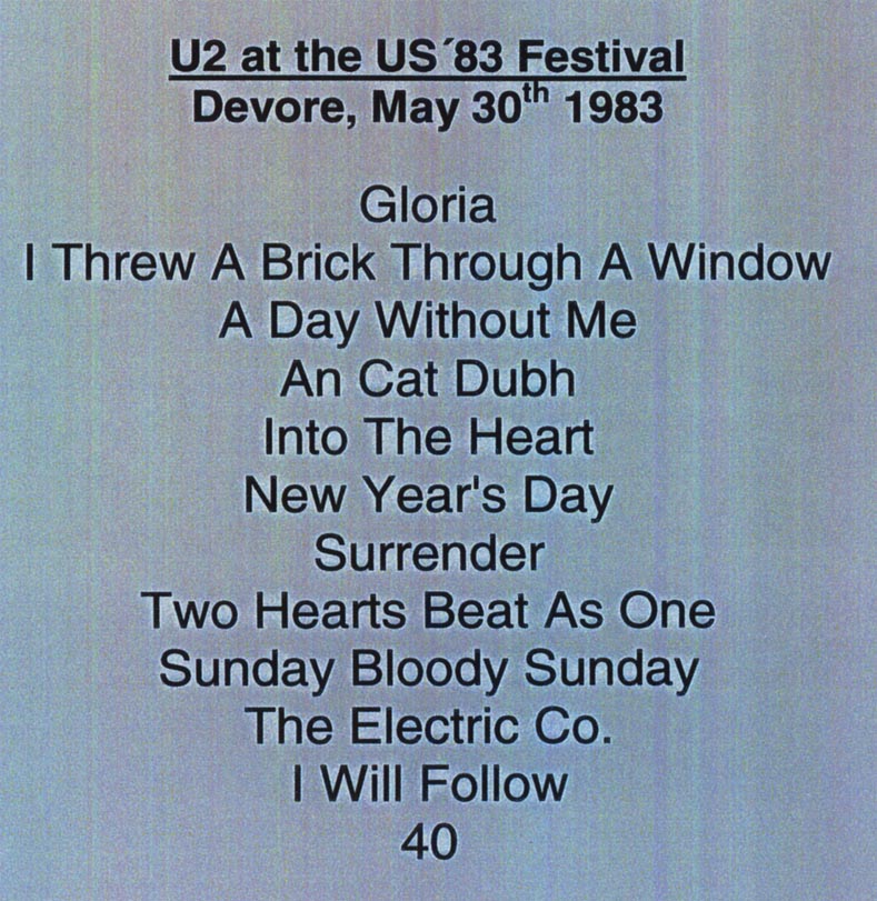 | ◁E??U2 US '83 Festival Devore,USA May 30th 1983◁E?? | |