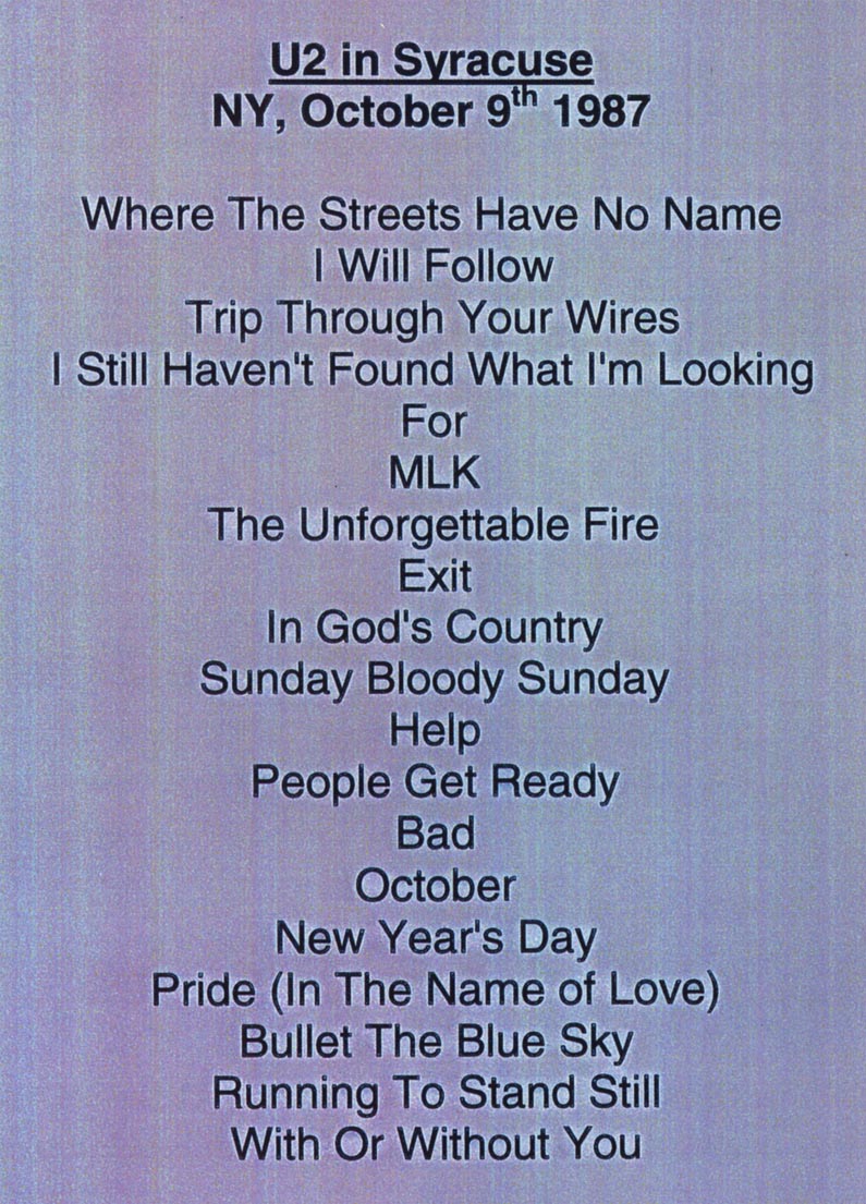 | ◁E??U2 CARRIER DOME SYRACUSE,NY OCTOBER 9th,1987◁E?? | |