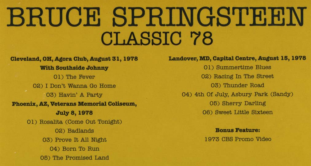 BRUCE SPRINGSTEEN CLASSIC '78 DVD