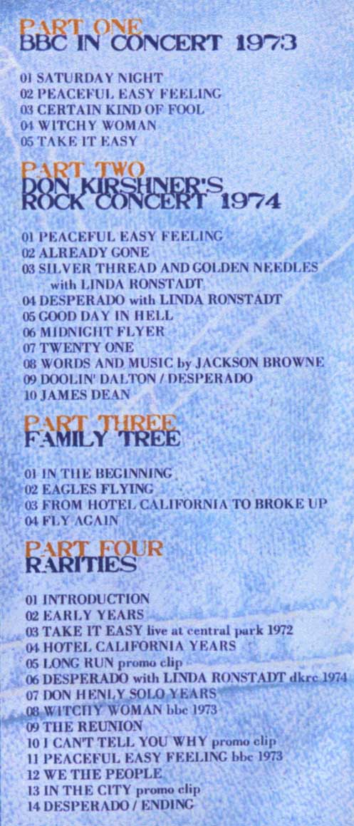 | ◁Eb>啁E??説昁E/b>◁E/td> | EAGLES Family Tree COLLECTION 1972-1994 TIME 136min RANK A PRO SHOT |