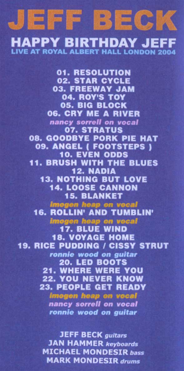 JEFF BECK Happy Birthday Jeff Live At Royal Albert Hall London June.24th.2004 TIME 104min RANK A AUDIENCE SHOT