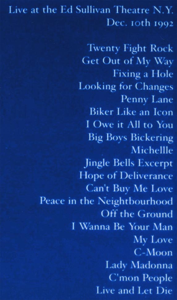 PAUL McCARTNEY MTV Upclose Live At The Ed Sullivan Theatre N.Y. December 10th 1992 DVDOT