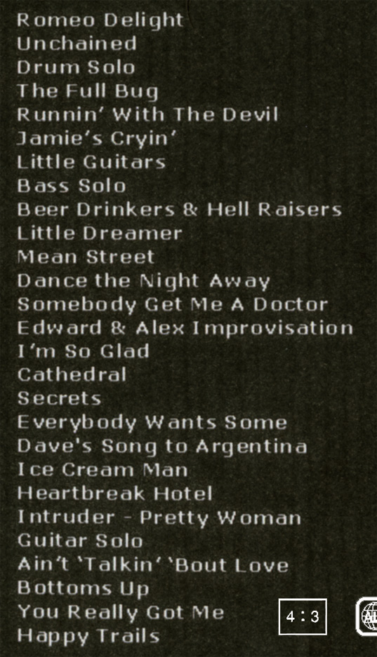 | ◁Eb>啁E??説昁E/b>◁E/td> | VAN HALEN Sao Paulo,BRAZIL January.21.1983 TIME 107min RANK A PRO SHOT |