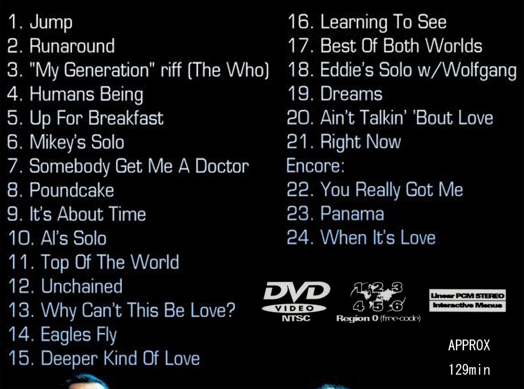 | ◁Eb>啁E??説昁E/b>◁E/td> | VAN HALEN WASHINGTON,DC JUNE 25.2004 TIME 129min RANK A AUDIENCE SHOT |