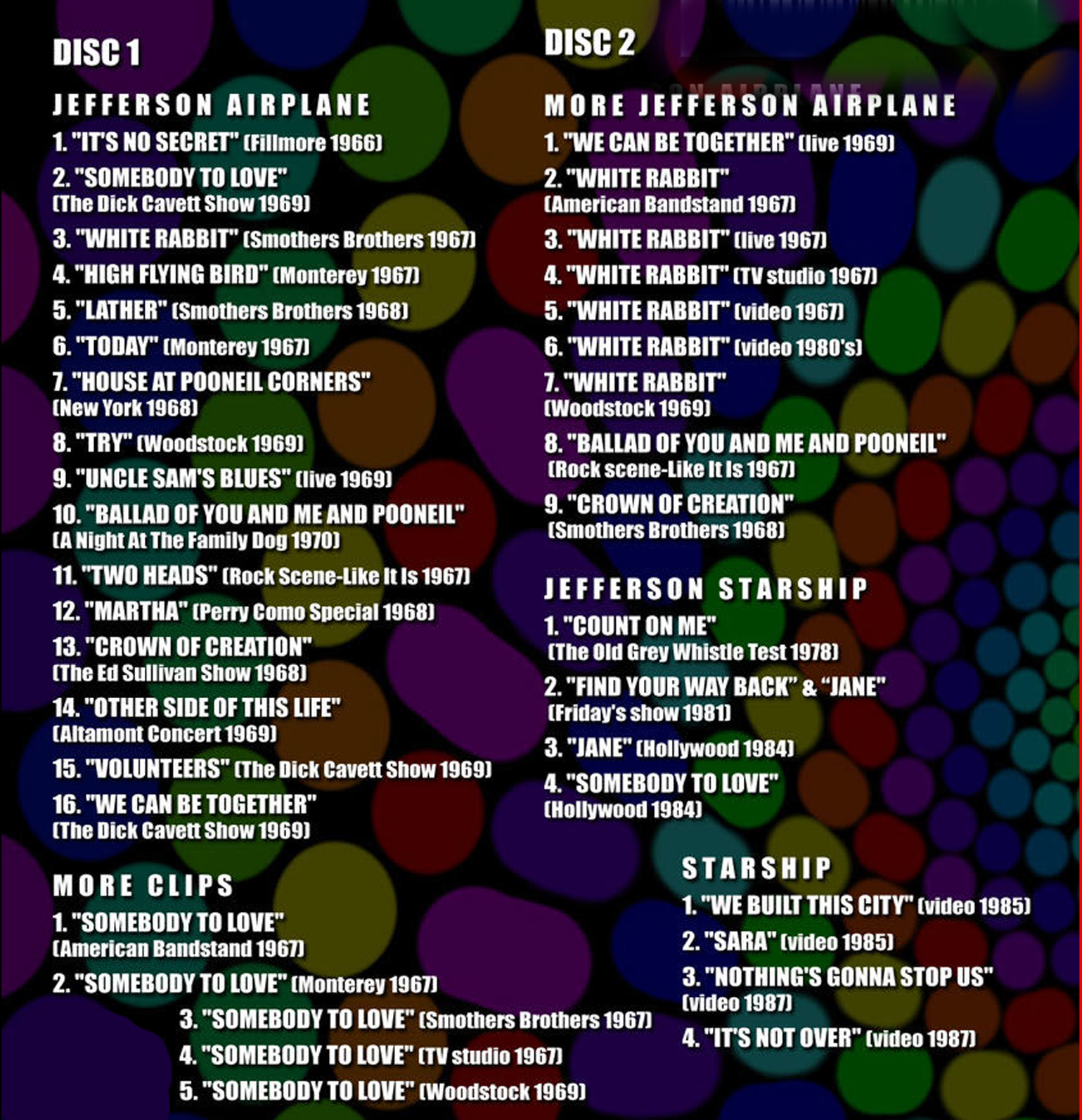 JEFFERSON AIRPLANE / STARSHIP Forever Hits Media Collection 1966 - 1987 TIME 148min RANK A PRO SHOT
