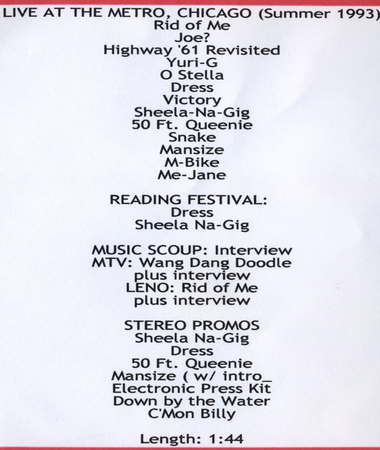 PJ HARVEY PERFORMANCES AND INTERVIEWS TIME 105min RANK A PRO SHOT